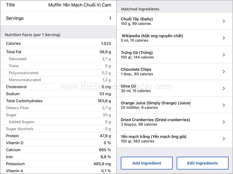 6. Bánh muffin yến mạch chuối vị cam bao nhiêu calo?